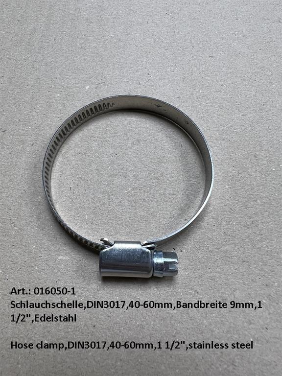 Hose clamp,DIN3017,40-60mm,1 1/2",stainless steel